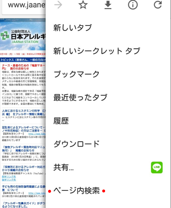 スマホだとわかりにくいのですが、googleのブラウザならメニューボタンから、「ページ内検索」をすることで同じように単語を検索することができるのです。