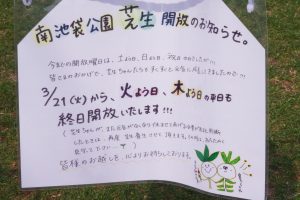 以前は基本土日しか芝生が解放されていなかったのですが、3/21から火曜・木曜の平日も解放されているそうです!