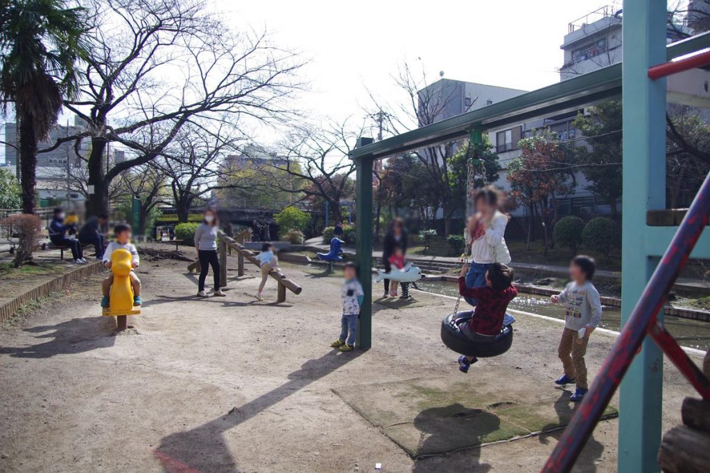 2018年3月某日(土曜日) 東京都墨田区、とうきょうスカイツリー駅から徒歩10分ほどの所にある大横川親水公園(おおよこがわしんすいこうえん)に4歳・1歳の子連れでお出かけしてきました。